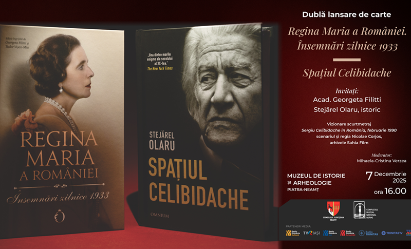 Complexul Muzeal Național Neamț organizează un notabil eveniment cultural care pune în valoare două personalități remarcabile ale României, Regina Maria și Sergiu Celibidache, prin intermediul unei duble lansări de carte. Două volume de referință care au apărut de curând la Editura Omnium vor fi prezentate publicului nemțean, volumul „Regina Maria a României. Însemnări zilnice 1933”, ediție îngrijită de Acad. Georgeta Filitti (traducere) și Tudor Vișan-Miu (note), care dezvăluie detaliile cotidiene și reacțiile suveranei în fața crizelor politice interne și externe majore ale anului 1933 și al doilea volum, „Spațiul Celibidache”, semnat de Stejărel Olaru, istoric și director al editurii Omnium, o monografie riguros documentată, printr-o epuizare a surselor edite și o investigație lăudabilă a surselor de arhivă, despre cariera dirijorului Sergiu Celibidache pe scena muzicală internațională dar și despre relația pe care excepționalul muzician a avut-o cu regimul comunist din România.