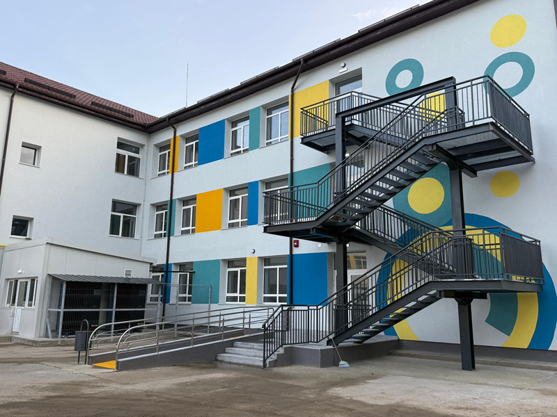 De asemenea, conform cerințelor ISU s-a realizat o scară metalică exterioară în două rampe, iar ușile care fac legătura dintre interior și curte, aferente grădiniței, au fost prevăzute cu deschidere automată. O altă categorie de lucrări a fost cea de înlocuire a instalațiilor electrice (de iluminat, prize, pentru protecție împotriva electrocutărilor, de protecție împotriva trăsnetului) și montarea unui sistem de panouri fotovoltaice (ce va acoperi o parte din iluminatul clădirii). Ca sursă regenerabilă de energie se vor folosi pompe de căldură de tip aer-apă, integrate în sistemul existent de încălzire.