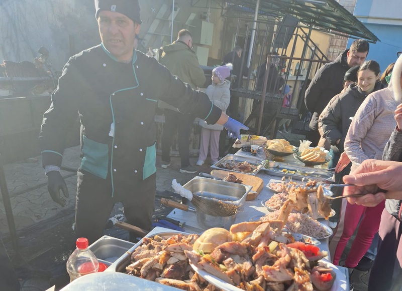 După premiere, alături de Moș Crăciun, am colindat părinții, iar apoi am ieșit în grădina de vară a complexului, unde ne-am delectat cu preparate tradiționale: porc la proțap cu bunătăți și cârlan la proțap cu orez.
