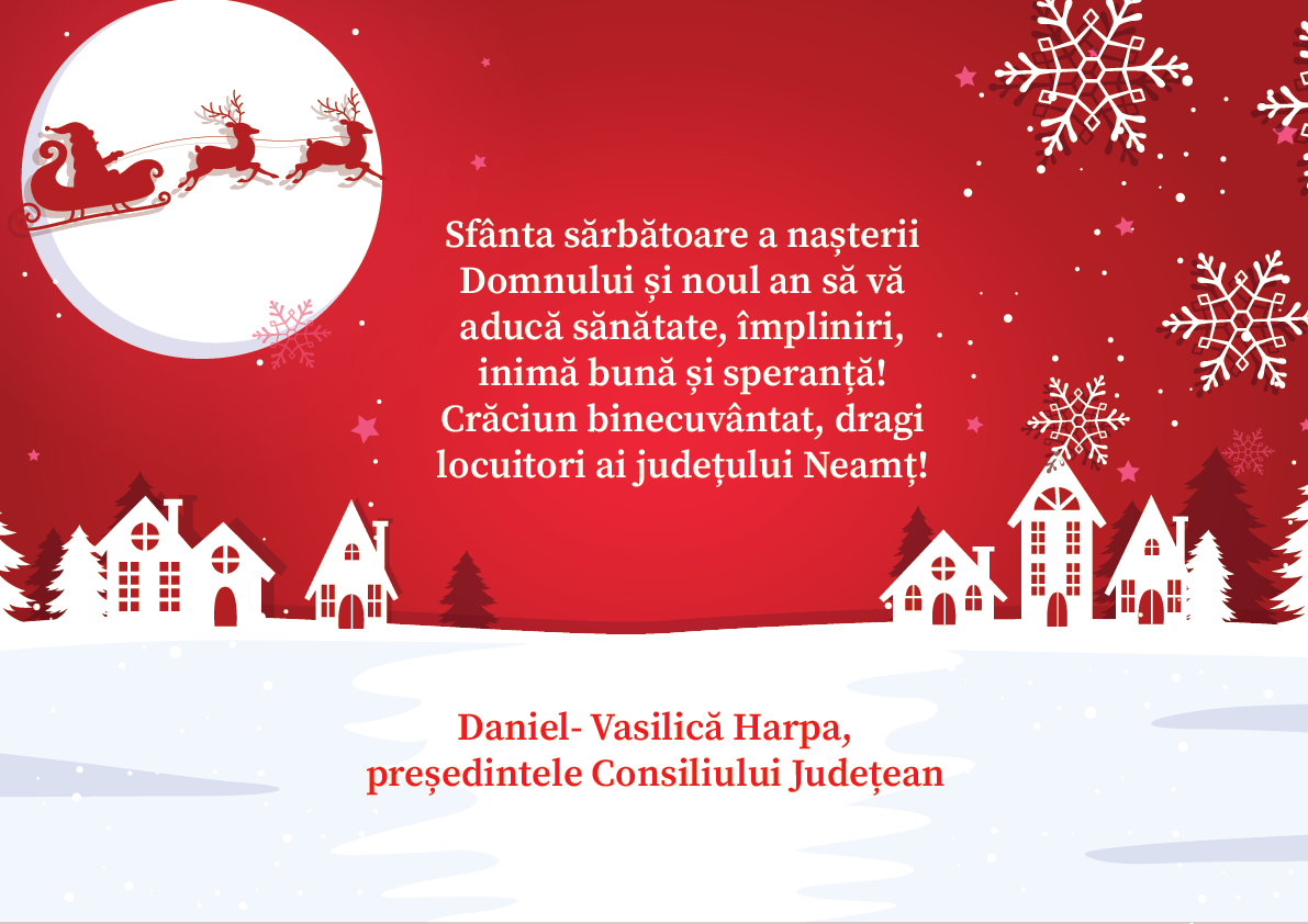 Felicitări de Sărbători Daniel-Vasilică Harpa, președintele Consiliului Județean De către AtitudineadeNeamț - 24/12/2025 0 FacebookTwitterPinterestWhatsApp Post Views: 66
