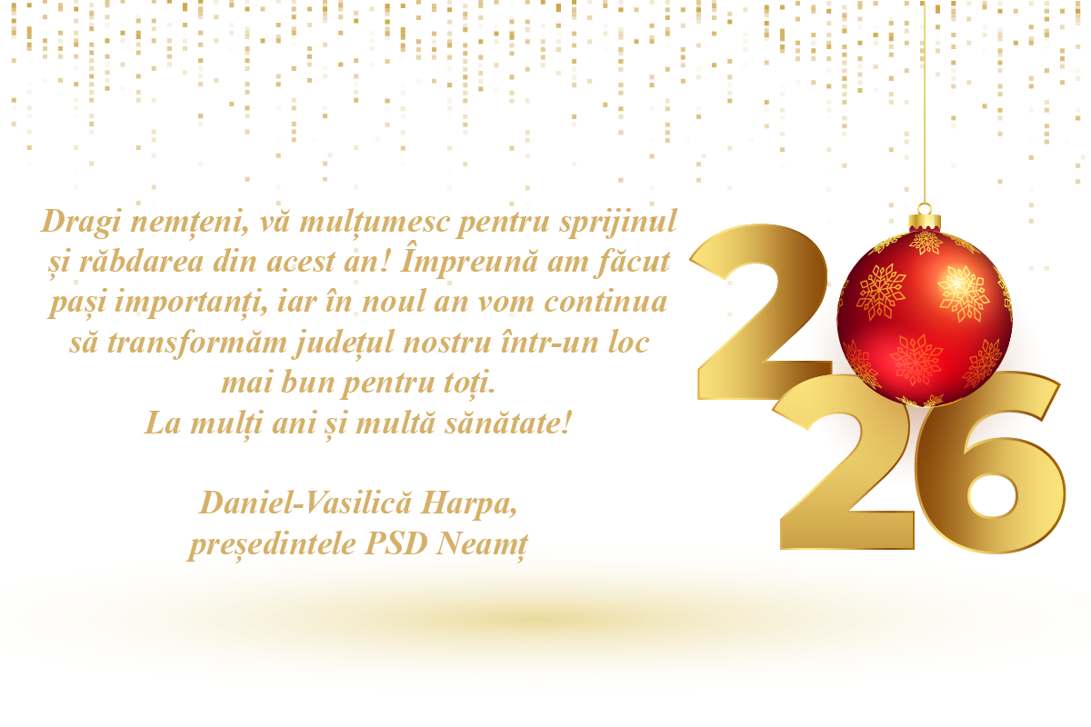 Felicitări de Sărbători Președinte Daniel-Vasilică Harpa – PSD Neamț De către AtitudineadeNeamț - 31/12/2025 0 FacebookTwitterPinterestWhatsApp Post Views: 59