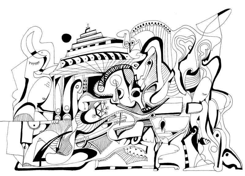 O expoziție inedită care provoacă privitorul la un dialog, la o implicare interpretativă a lucrărilor, într-o narațiune a cărei finalitate este lăsată la imaginația vizitatorului. Predomină grafica în tuș negru, însoțită de fotografie, procesarea digitală și pictură. Un univers conceptual al formelor, în construcții de imagini care cuceresc prin dinamism și siguranța desenului. Pornind de la realitatea observată, artistul creează un imaginativ propriu, oferind spațiului structuri și energii, care se definesc în interacțiuni de trăiri, subtil și armonios relaționate în compoziții concentrate. Umanul în intimitatea sa, în corelație cu societatea contemporană, într-un urban evolutiv, îl regăsim în transpuneri sugestive de siluete și geometrii, în linieri de tușe direcționând imaginativul spre un orizont al percepției și al memoriei. O abordare care îmbină viziunea artistică cu simțul de observației asupra lumii, oamenilor, naturii, în urma unei atente investigații personale, cu o profundă analiză a trăirilor în varii situații.