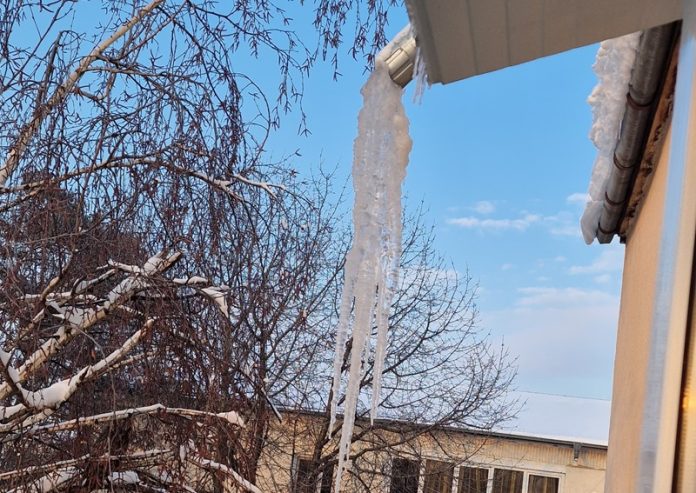Bucățile de gheață se pot desprinde oricând și pot pune în pericol viața oamenilor sau avaria mașinile parcate în zonă.