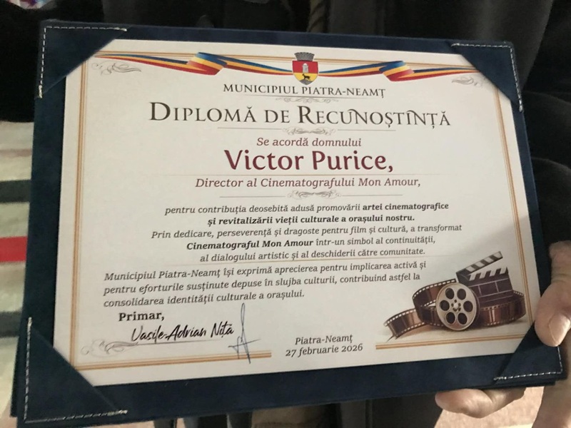 ”Dincolo de funcția de primar, astăzi am vorbit ca un simplu copil din Piatra-Neamț care a crescut în sala de cinema sub privirea blajină a domnului Purice. El este cel care m-a făcut să îndrăgesc arta cinematografică și m-a transformat într-un cinefil pe viață. Domnule Victor Purice, vă mulțumim! Nu ați condus doar un cinematograf, ci ați crescut generații de oameni care au învățat să viseze în fața marelui ecran. Piatra-Neamț vă datorează o parte din sufletul său cultural. La mulți ani în slujba artei, domnule Director!”, a precizat primarul Adrian Niță.