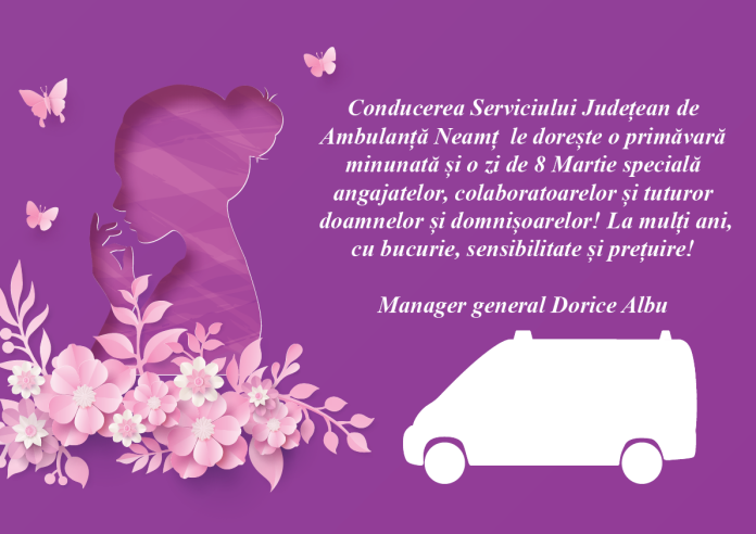 Felicitări de Sărbători Conducerea Serviciului de Ambulanță Neamț De către AtitudineadeNeamț - 07/03/2026 0 FacebookTwitterPinterestWhatsApp Post Views: 453