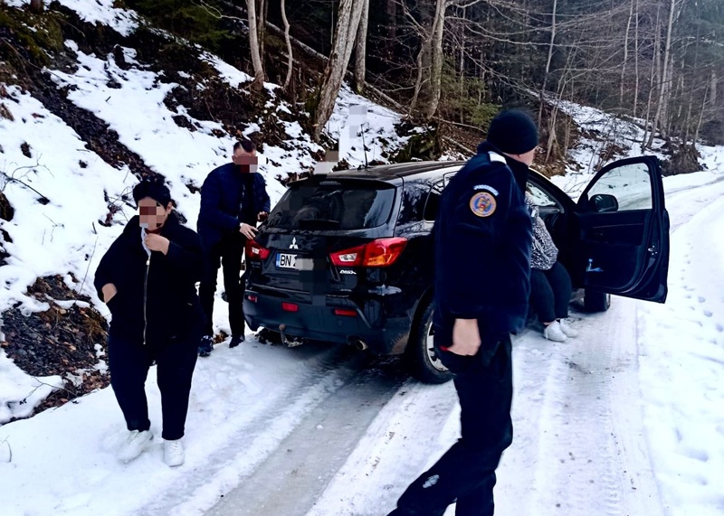 Jandarmii montani au identificat persoanele (un bărbat și două femei) și le-au acordat sprijin pentru a scoate autoturismul și a ajunge în siguranță la drumul principal.