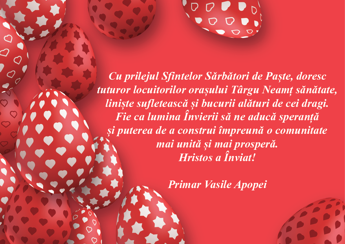 Felicitări de Sărbători Primar Vasile Apopei – Târgu Neamț De către AtitudineadeNeamț - 11/04/2026 0 FacebookTwitterPinterestWhatsApp Post Views: 27