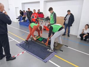 ✅️proba practică – transportul asistat al unui accidentat aşezat pe targă pe distanţa de 50 m.